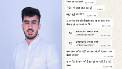 रौनक खत्री को अज्ञात नंबर से धमकी भरा वॉट्सएप पर मैसेज आया है।मैसेज में कहा गया कि 5 करोड़ दो वरना गोली मार देंगे।धमकी भरे मैसेज में कहा गया है,रोहित गोदारा बोल रहा हूं,तेरी नेतागिरी अब खत्म हो गई है,कब तक तू हमारा फोन नहीं उठाएगा,गोली देख अब कैसे आएगी,अब गोली ही हमारी बात का जवाब देगी। 5 करोड़ से नीचे से कम में हमारे पास कोई समझौता नहीं है।