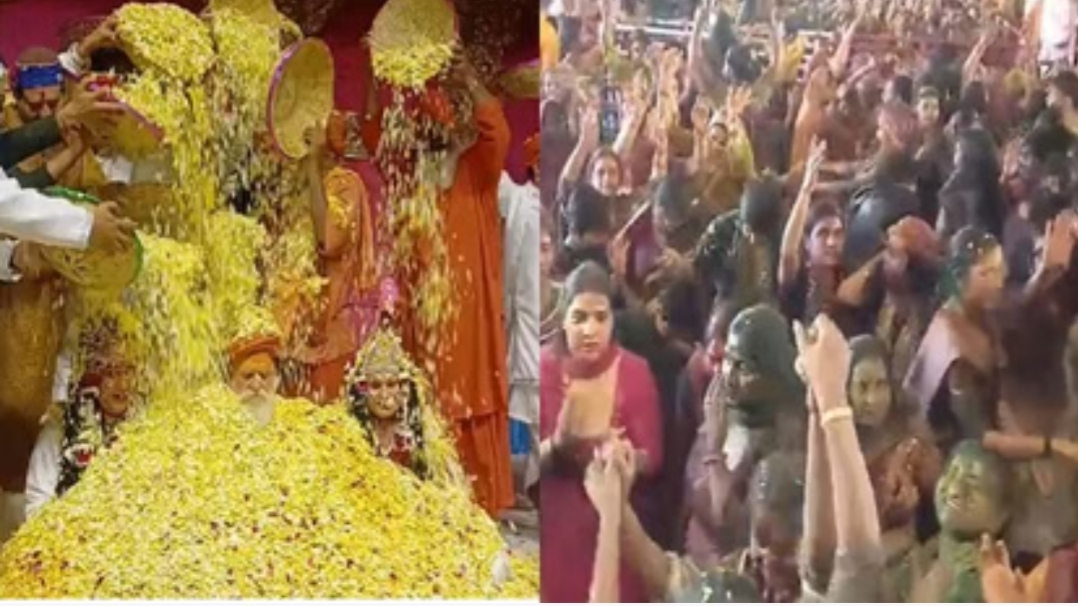 रमणरेती आश्रम में फूलों के साथ बरसा अबीर-गुलाल,होली के रंगों से सराबोर हुए भक्त
