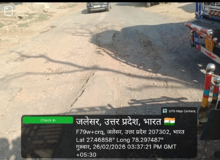 ताजा तस्वीरें और जीपीएस लोकेशन (27.468858° N, 78.297487° E | Plus Code: F79W+CRQ, जलेसर) यह साबित करने के लिए पर्याप्त हैं कि सड़क की हालत बदतर से बदतर हो चुकी है।कहीं गड्ढों में पानी भरा है,जो रात के समय जानलेवा जाल बन जाता है,तो कहीं बड़े-बड़े गड्ढे सड़क को इस कदर चीर रहे हैं कि ट्रक और भारी वाहन मुश्किल से निकल पा रहे हैं।दोपहिया वाहन चालकों के लिए यह मार्ग हर पल मौत का निमंत्रण बन चुका है।