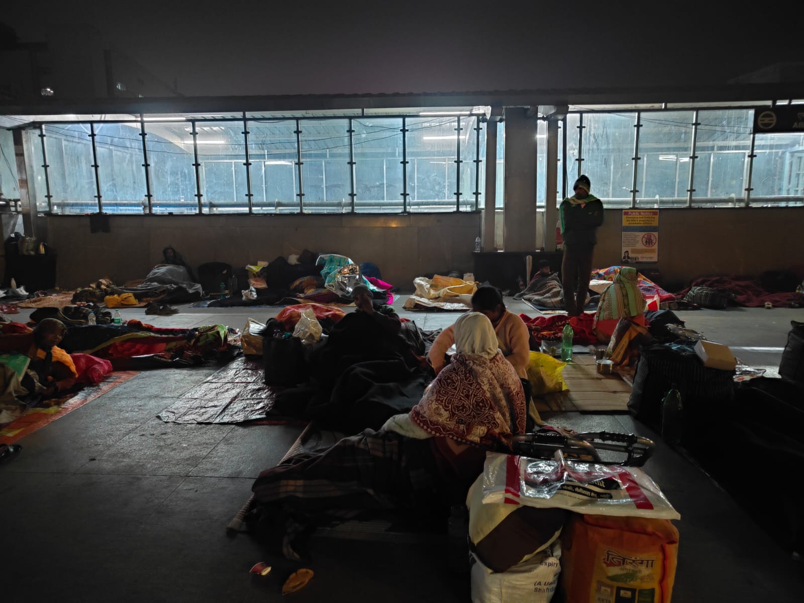 एम्स के बाहर खुले में रह रहीं बिहार के कटिहार से आई महिला बताती हैं कि मेरा लड़का मंदबुद्धि है,डॉक्टर ने देख तो लिया,लेकिन अब जनवरी के पहले हफ्ते में दोबारा बुलाया है। अब हम कहां जाएं, इतने पैसे नहीं कि कहीं होटल में रुक जाएं,सो यहीं पड़े रहते हैं। बगल में टॉयलेट है, 20 रुपैया देकर वहीं नहा-धो लेते हैं।हमने पूछा,आपका बच्चा अभी कहां है। महिला ने ज़मीन पर सोए एक बच्चे की ओर इशारा कर कहा, इसी का इलाज करवाने आए हैं।यानी खुले में मरीज़ और तीमारदार एक-साथ  रह रहे हैं।