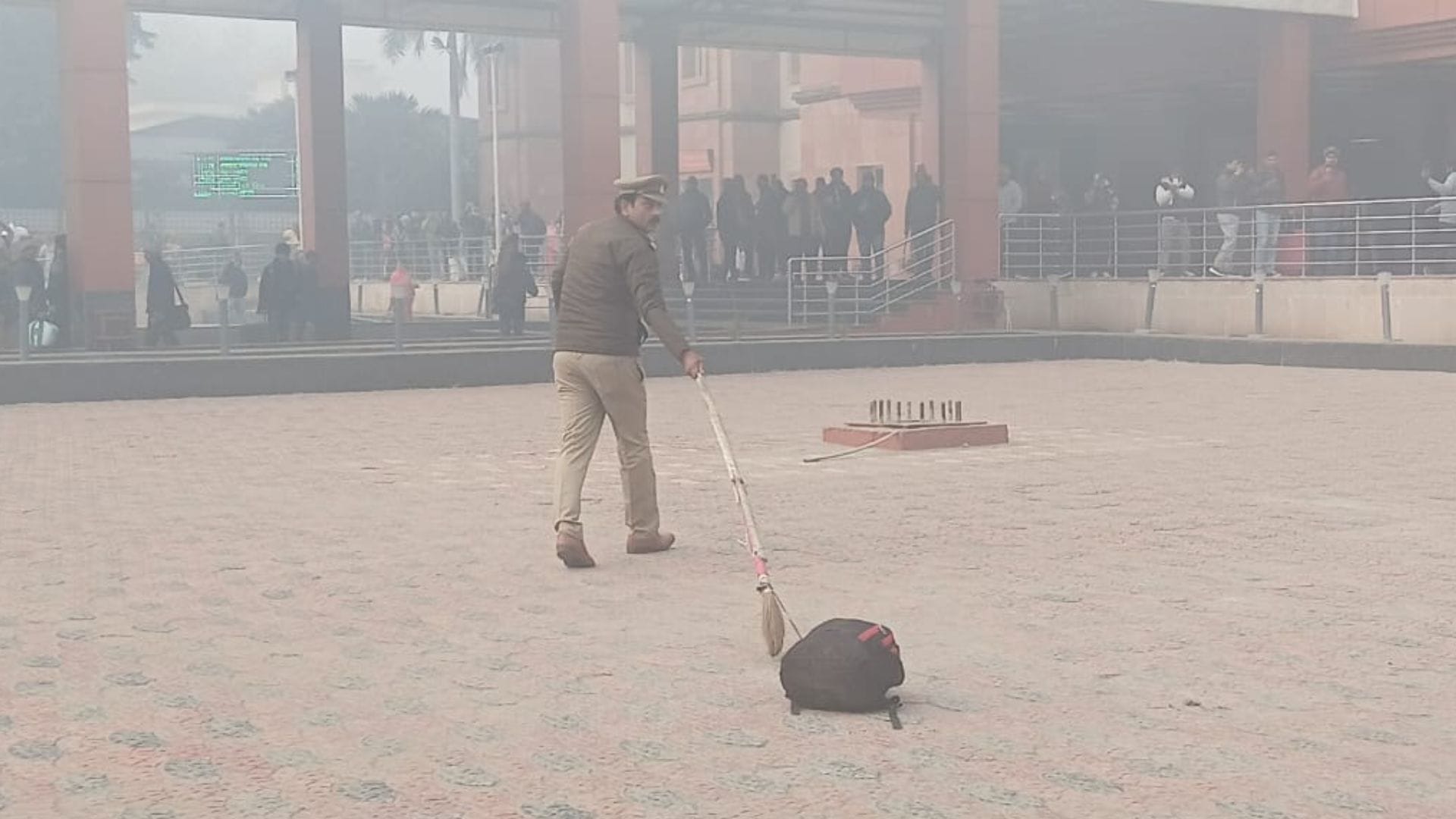 ट्रेन स्टेशन पर पहुंचने से पहले ही मऊ एसपी इलामारन जी, एएसपी अनूप कुमार,आरपीएफ प्रभारी निरीक्षक अजय सिंह, जीआरपी थानाध्यक्ष राजकपूर सिंह बम डिस्पोजल स्क्वाड टीम के साथ मौजूद थे।ट्रेन रुकते ही यात्रियों को बाहर निकालकर चेकिंग शुरू की गई।चेकिंग के दौरान एक संदिग्ध बैग बरामद हुआ,लेकिन उसमें विस्फोटक जैसा कुछ नहीं था। रेलवे की टेक्निकल टीम ने भी अपने अनुसार बेग की चेकिंग की। इस दौरान मऊ जंक्शन के बाहर तैनात की गई थी।