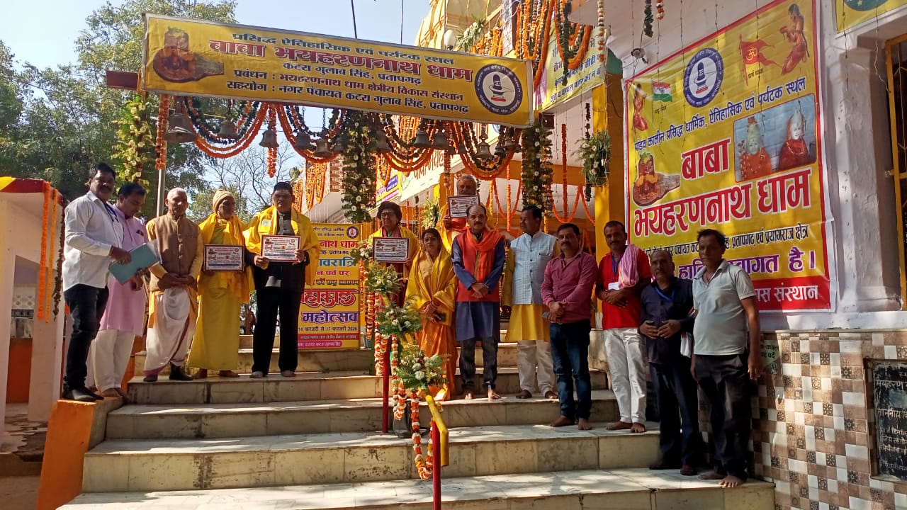 प्रतापगढ।प्रसिद्ध पांडव कालीन भयहरण नाथ धाम में 26वें महाकाल महोत्सव के शुभारंभ अवसर पर प्रबन्ध समिति द्वारा शनिवार को भव्य पूजन हुआ।सत्य सनातन धर्म संगोष्ठी में प्रसिद्ध संत जंगल बाबा और श्रृंगवेरपुर धाम के अध्यक्ष व बोर्ड ऑफ रिवेन्यु बार के अध्यक्ष बाल कृष्ण पांडेय और इलाहाबाद विश्वविद्यालय की प्रोफेसर डॉक्टर बिमला व्यास ने सनातन धर्म के संदर्भ में अपने विचार व्यक्त किया।